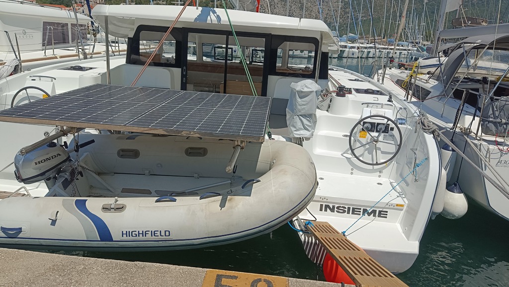 Spinnaker/Blister 250 €/week, Outboard engine 100 €/week, SUP (Stand Up Paddle) 150 €/week, Pet on board 100 €/charter, Safety net 100 €/charter, Towel set 10 €/person. Skipper 200 €/day + food suply, Hostess 180 €/day + food.